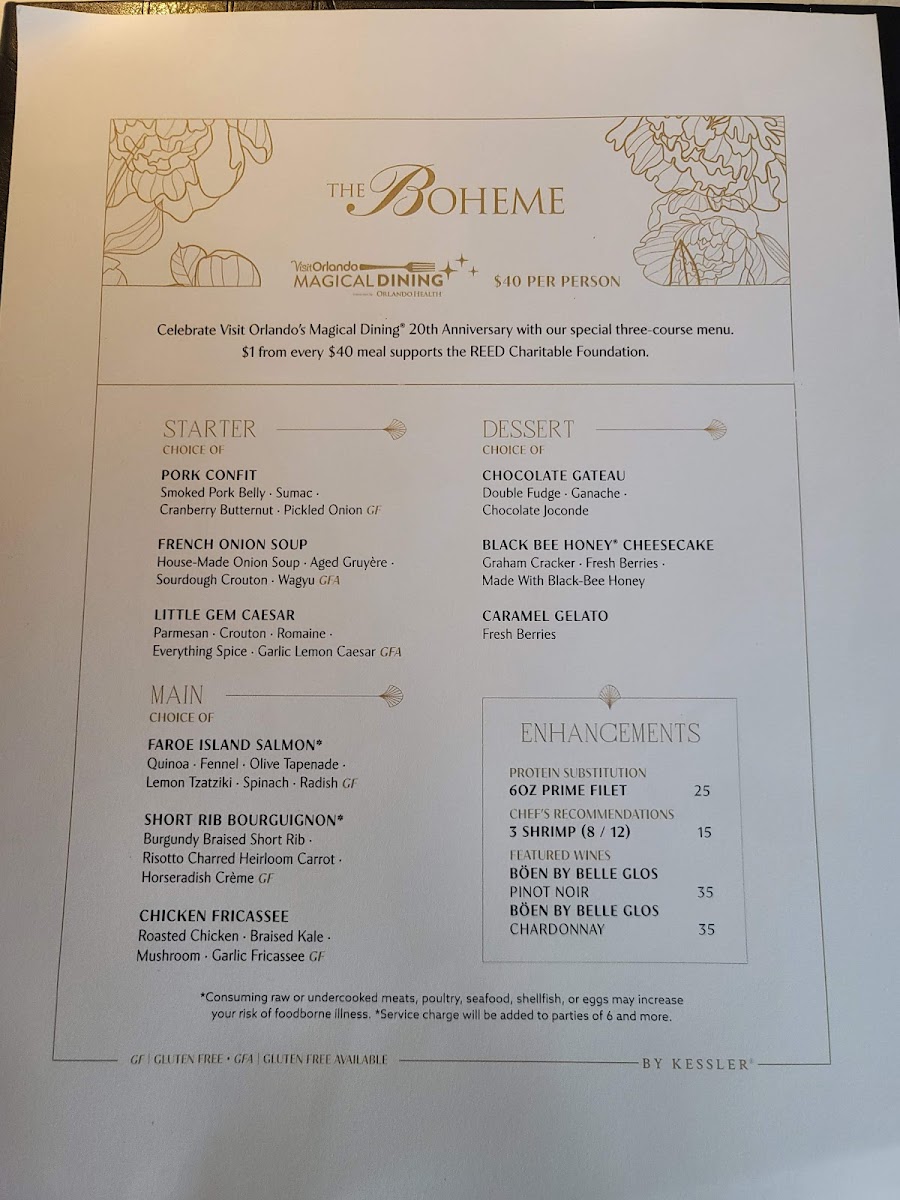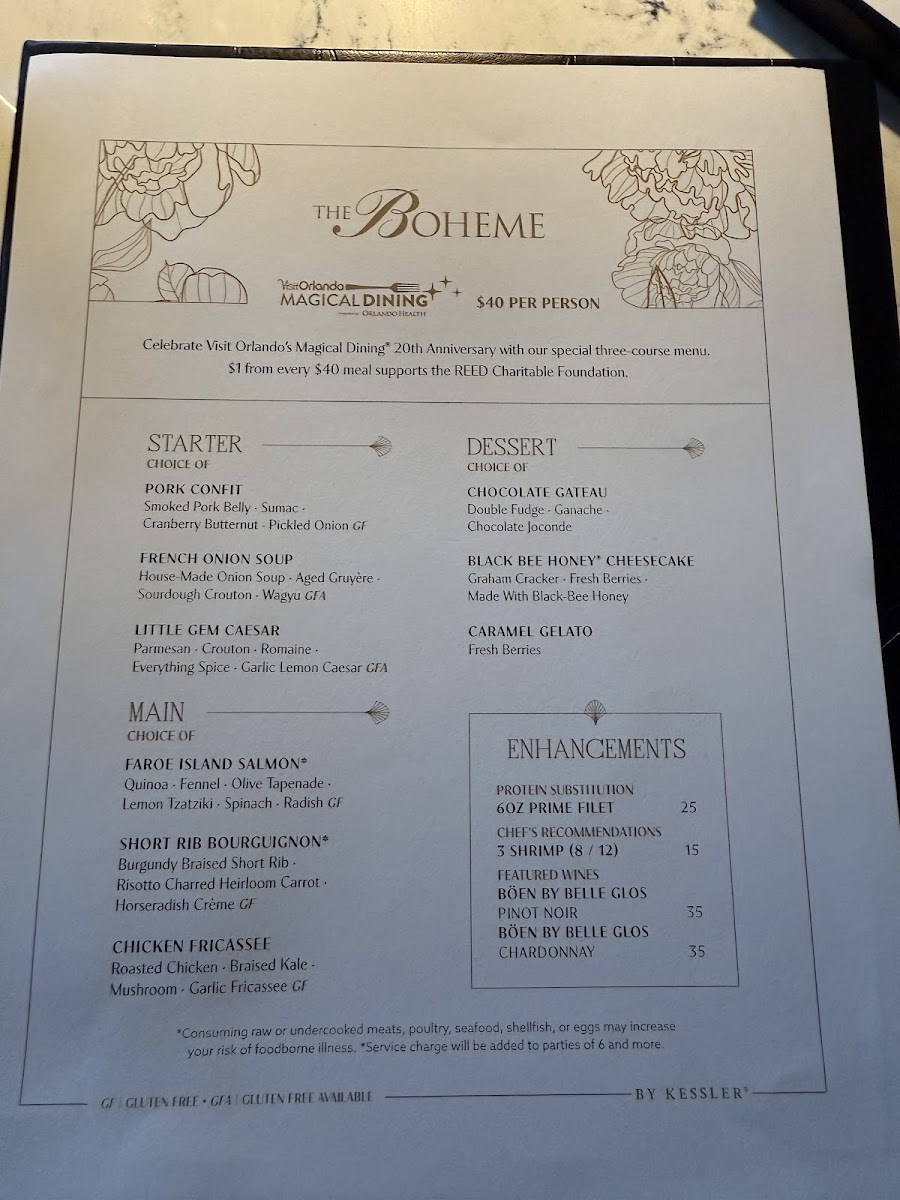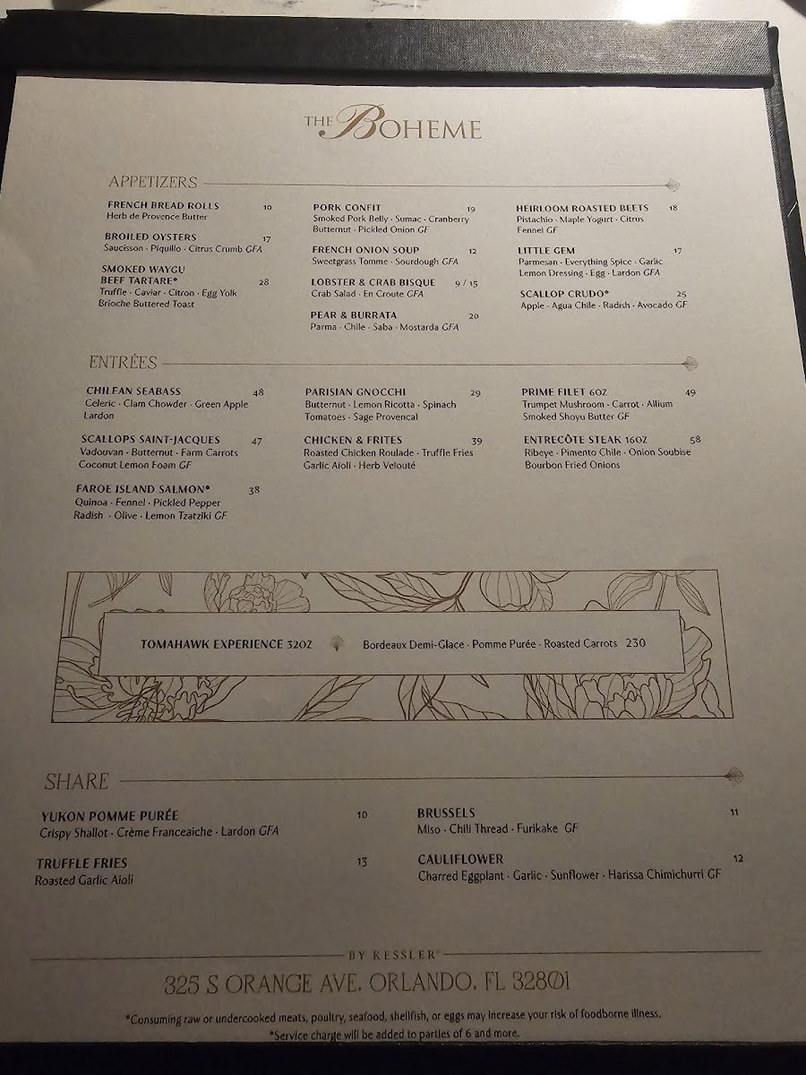 Welcome to The Boheme, nestled in the elegant Grand Bohemian Hotel Orlando. This sophisticated restaurant offers an inviting ambiance that is perfect for both leisurely dining and celebratory occasions. Guests have lauded the exceptional service, with staff like Sophia and Ms. Raquel ensuring a warm and memorable experience.